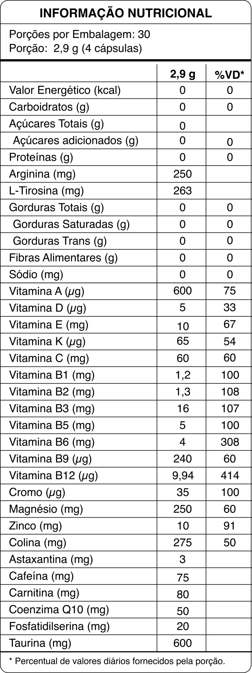 Fórmula completa para foco, energia mental e desempenho cognitivo com ativos que aumentam a concentração e reduzem a fadiga mental.